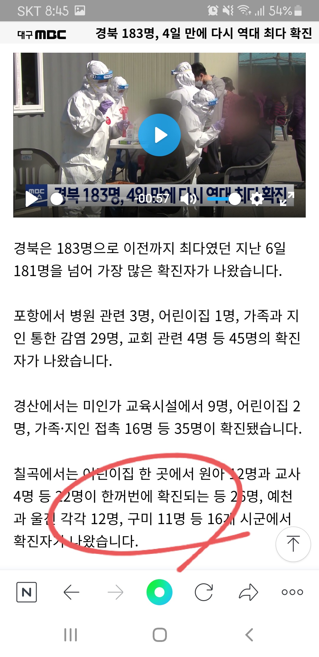 정정하세요조재한기자님! 칠곡어린이집이아니라유치원집단발생이라구요 등록일 : 2021-12-11 14:13
