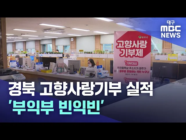 ◀앵커▶고향사랑 기부제가 첫발을 뗀 지 이제 1년이 다 돼 가는데요.열악한 지방재정을 확충해 지방 소멸에 대응하겠다는 당초 계획과 달리, 경상북도 대부분 지자체에서 모금 실적이 저조하기만 합니다.김경철 기자가 보도합니다.◀기자▶10만 원을 기부하면 연말정산 시 세액공제는 물론이고, 3만 원 상당의 답례품도 받을 ...
