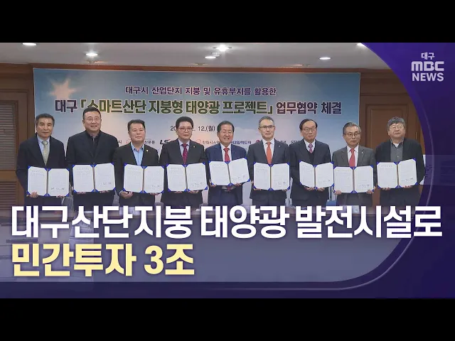 ◀앵커▶최근 홍준표 대구시장이 대구에 3조 원가량 투자할 대기업과 막판 조율을 하고 있다고 SNS 통해 밝혔었는데요.12월 12일 관련 내용이 공개됐습니다. 김은혜 기자 나와 있습니다. 김은혜 기자, 대구에 3조원이 투자돼 국내에서 가장 큰 규모로 태양광 발전시설이 설치된다는 것이죠?◀기자▶그렇습니다.12월 12일 대구시...