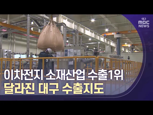 ◀앵커▶2022년 대구의 수출이 처음으로 100억 달러를 돌파한 105억 달러로 사상 최대치를 기록할 것으로 전망됐습니다.수출 품목을 살펴보니 이차전지 소재 산업이 처음으로 자동차 부품산업을 제치고 1위로 올라섰습니다.대구의 수출 지도가 완전히 바뀌었습니다. 보도에 심병철 기자입니다.◀기자▶대구시 달성군 구지면 대...