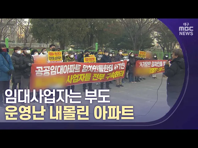 ◀앵커▶ 최근 대구에 한 공공 건설 민간임대주택 사업자가 분양전환을 미끼로 임차인들의 돈을 가로채 사기 혐의로 재판에 넘겨졌다는 보도 해드렸습니다.문제는 여기서 끝난 게 아니었습니다.해당 아파트 임차인들이 당장 아파트 운영과 관리를 걱정해야 할 처지에 놓였습니다.어찌된 일인지 김은혜 기자가 취재했습니다. ◀...