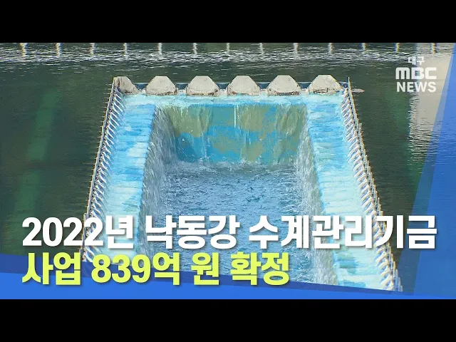 올해 낙동강 수계관리기금 사업이 839억 원 규모로 확정됐습니다.하수처리장 등 환경기초시설 설치와 운영에 669억 원, 주민지원사업에 104억 원을 씁니다.비점 오염저감사업에 27억 원, 하천쓰레기 정화사업과 상수원 관리사업에 23억 원, 수질오염 총량 관리사업에 15억 원의 사업비가 배정됐습니다.낙동강 수계관리기금...