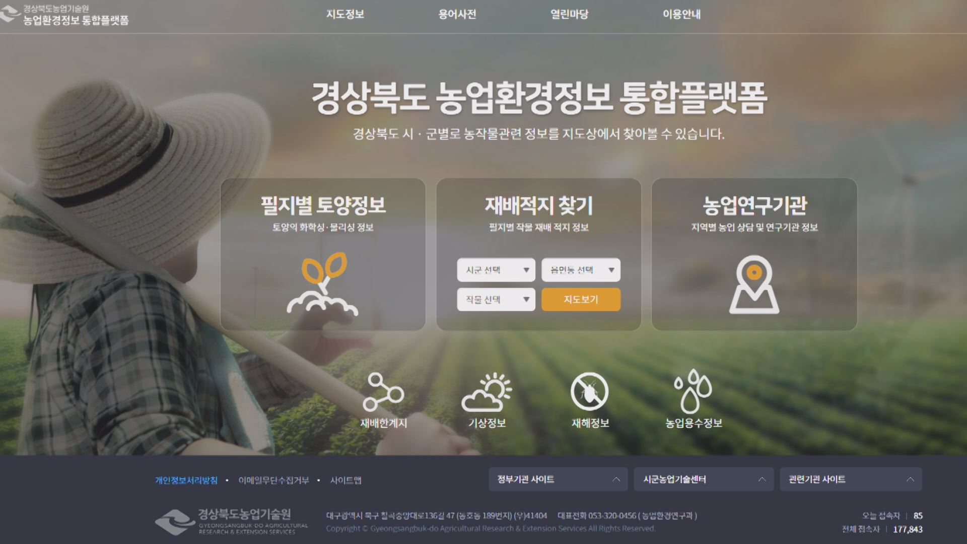 경북농업기술원이 농경지의 다양한 정보를 인터넷 사이트에 통합해서 제공하는 '농업 환경정보 통합플랫폼' 서비스를 개발했습니다. 경북 23개 시·군의 560만 농경지 필지의 토양 특성과 병해충 발생 상황, 가뭄과 수자원 정보를 지도를 기반으로 한 공간 정보 형태로 보여 줍니다.경북농업기술원 홈페이지에서 접속할 수 ...