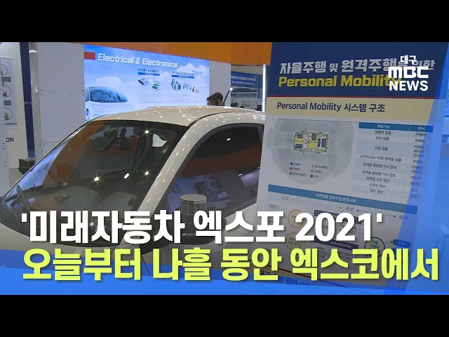 미래자동차 기술과 정보를 한자리에서 볼 수 있는 '대구 국제 미래자동차 엑스포 2021'이 오늘부터 나흘 동안 엑스코에서 열립니다.현대와 기차, 벤츠, 지프, 로터스 등 완성차를 비롯해 삼성SDI와 서울로보틱스 등 분야별 선두 기업 등 161개 업체가 참여해 천여 개의 부스를 운영합니다.온라인과 오프라인을 통해 친환경 ...