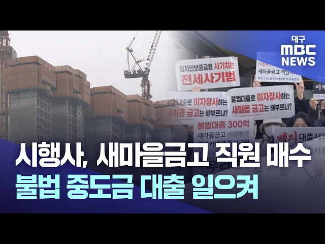 ◀앵커▶새마을금고에서 불법 대출을 받은 시행사 대표와 새마을금고 직원 등이 재판에 넘겨졌습니다.대구 지역 금고 4곳이 이 건설사에 불법 대출을 한 사실이 드러났는데요.이 과정에서 시행사 대표가 직원에게 억대의 금품을 건넨 정황도 포착됐습니다.이번 사건은 새마을금고중앙회가 불법 대출 정황을 파악해 임직원과 ...