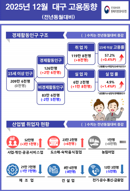 12월 대구 실업자 수 급증…제조업·건설업 '동반 침체' 고착화