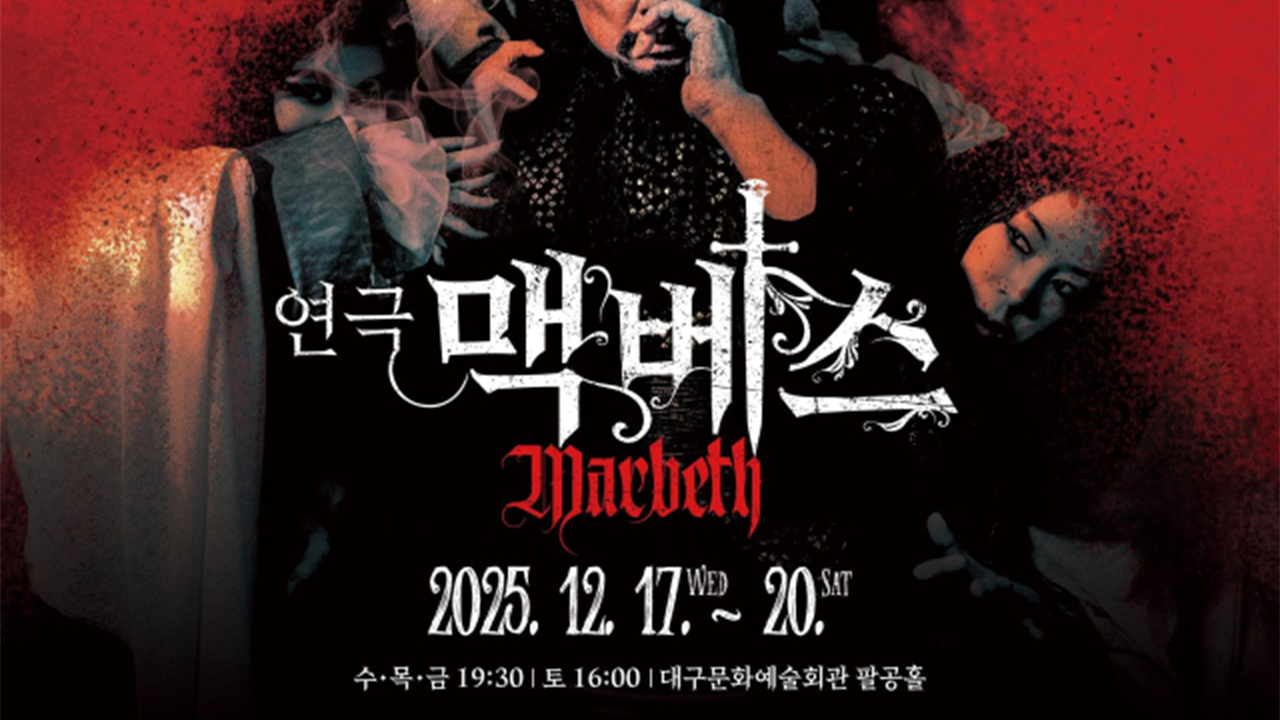 대구시립극단이 제60회 정기 공연으로 셰익스피어 4대 비극 중 하나인 '맥베스'를 12월 17일부터 20일까지 대구문화예술회관 팔공홀 무대에 올립니다.'맥베스'는 셰익스피어 비극 중에서도 가장 강렬한 서사로 꼽히는데, 원작의 방대한 구조를 압축해 약 100분의 상영시간 안에 마칠 수 있도록 구성했습니다.스코틀랜드 장...