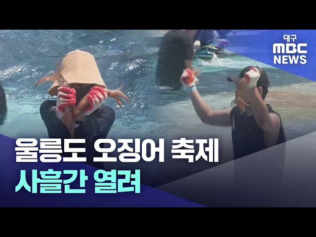 ◀앵커▶울릉도의 대표적인 여름 축제인 오징어 축제가 8월 5일 개막했습니다.사흘간의 축제 기간 만여 명의 관광객이 울릉도를 찾을 것으로 기대됩니다.김형일 기자가 보도합니다.◀기자▶울릉도 오징어 축제가 사흘간의 일정으로 울릉 저동항 일대에서 열리고 있습니다.관광객들에게 가장 인기가 많은 오징어 맨손잡이 체험장...