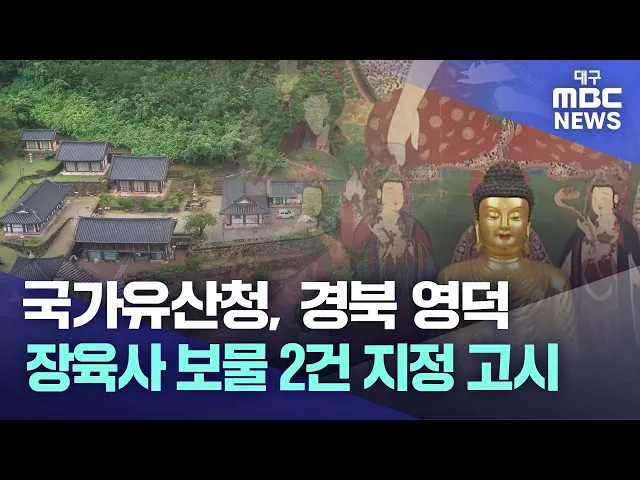 ◀앵커▶경북 영덕 천년고찰 장육사는 고려시대 나옹왕사가 창건했다고 전해지는 사찰인데요.국가유산청이 장육사에 있는 영산회상도와 지장시왕도를 국가 지정 문화유산 보물로 지정 고시했습니다.김형일 기자가 보도합니다.◀기자▶경북 영덕군 창수면에 있는 장육사.한국 불교 3대 화상으로 불리는 나옹왕사가 고려시대 창건...