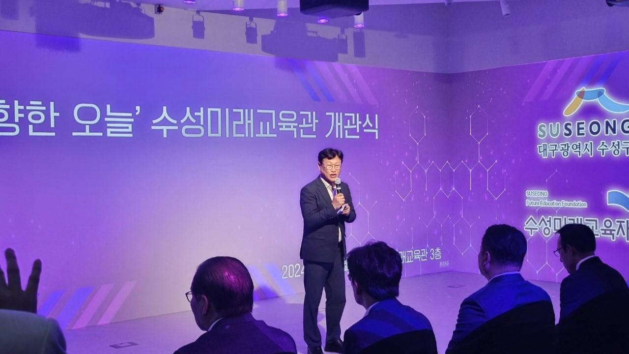 사진 제공 대구 수성구대구스타디움 서편 광장에 최신 디지털 기술과 설비를 갖춘 '수성미래교육관(S-NEXT)'이 문을 열었습니다.전체면적 640여㎡에 지상 3층 건물로 지어진 교육관은 1층엔 생산형 인공지능(AI)과 가상현실(VR) 콘텐츠를 체험하고 만들 수 있는 '지능형 전시실'이 조성됐습니다.2층에는 스마트 강의실과 교...