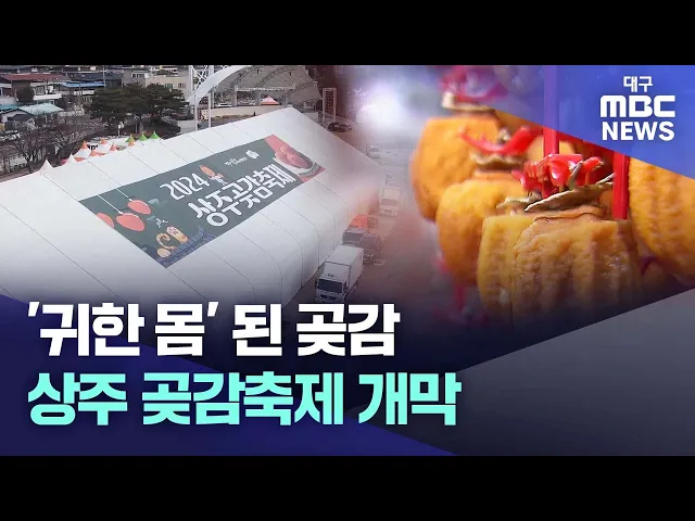 ◀앵커▶전국 곶감 생산량의 60%를 차지하는 상주에서 1월 12일 곶감 축제가 개막합니다.2023년 유례없는 집중호우로 감 생산량이 줄어든 탓에 2024년 곶감 가격도 크게 치솟았는데요.상주시는 '귀한 몸'이 된 곶감을 축제장에서는 경매를 통해 저렴하게 팔기로 했습니다.김경철 기자가 보도합니다.◀기자▶주황빛으로 발갛게 ...