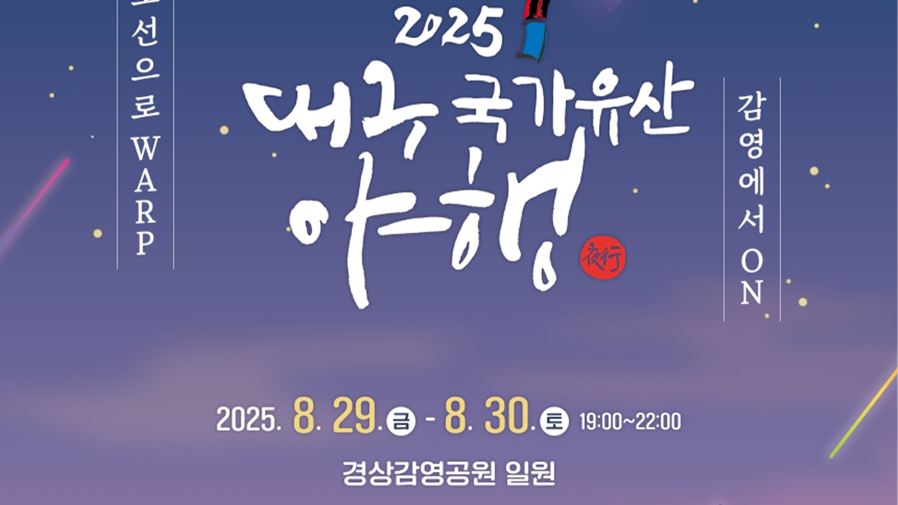 자료 제공 대구 중구8월 29일부터 이틀 동안 대구 중구 경상감영공원 일대에서 '2025 대구 국가유산 야행' 행사가 열립니다.국가 지정 사적지인 경상감영의 역사적 의미를 담아 8개 주제, 20여 개 프로그램이 펼쳐집니다. 8월 29일 오후 7시 개막식을 시작으로 무형유산인 수건춤 공연, 관찰사 도입 행사 재연, 창작 뮤지컬...