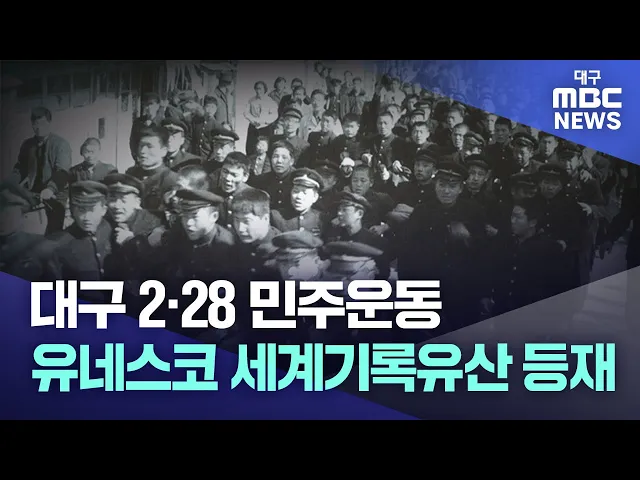 ◀앵커▶우리나라 최초의 민주화 운동인 2·28 민주운동의 기록물이 유네스코 세계기록유산으로 지정됐습니다.독재 정권의 불의에 항거해 대구의 고등학생들이 시위하는 모습 등 기록물 6점입니다.대구에서는 6년 전인 2017년 국채보상운동이 먼저 유네스코 세계기록유산에 등재됐었는데요.대구의 시민정신으로 삼고 있는 2·28...