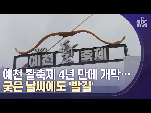 ◀앵커▶ 활의 고장 경북 예천에서 코로나로 중단됐던 '활 축제'가 4년 만에 다시 개막했습니다.비가 오는 궂은 날씨에도 어린이날을 맞아 가족 단위 관람객들이 축제장을 찾았는데요.직접 활을 쏘고, 게임도 할 수 있는 체험 행사가 이번 주말 내내 이어집니다.김경철 기자입니다.◀기자▶ 활과 화살을 만드는 장인들이 나무에...