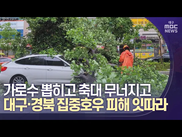 ◀앵커▶ 대구·경북에서도 집중 호우와 강한 바람으로 인해 크고 작은 재해가 발생했습니다.곳곳에서 나무가 뿌리째 뽑히는가 하면 경북 영주에서는 축대가 무너져 주택을 덮쳤습니다.보도에 권윤수 기자입니다.◀기자▶ 오늘(5월 6일) 오전 11시 15분쯤 대구시 수성구의 한 도로.집채만 한 가로수가 맥없이 쓰러지더니 도로를 ...