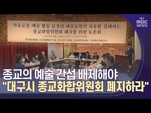 ◀앵커▶'예술은 예술로 봐달라' 대구시 종교화합자문위원회가 베토벤 교향곡마저 공연하지 못하도록 하자, 음악인들은 이렇게 호소했습니다.음악인들은 종교적 갈등 때문에 예술의 자유가 침해받아서는 안 된다며 존재 이유를 잃어버린 종교화합자문위원회의 폐지를 요구했습니다.보도에 김철우 기자입니다.◀기자▶대구의 음...