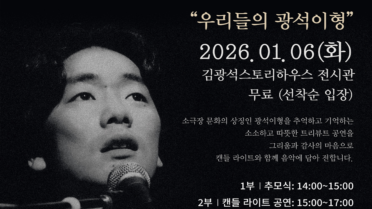 김광석 30주기 추모제가 1월 6일 오후 2시 대구 중구 김광석스토리하우스에서 열립니다.추모제에서는 추모식을 시작으로 첼리스트 채송아, 싱어송라이터 김성준, 소프라노 심규연이 김광석의 명곡을 재해석해 추모 공연을 펼칩니다.또 '김광석 노래 이야기와 인생 이야기' LP 청음회도 열립니다.김광석스토리하우스는 이날 ...