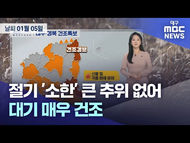 오늘은 1년 중 가장 추운 날인 절기 '소한'인데요.다행히 큰 추위 없이 기온은 평년 수준 보이겠습니다.현재 대구의 기온 2도로 시작해 낮에는 6도 예상되는데요.다만 내일은 대구와 경북중북부내륙을 중심으로 아침 기온이 -10도 안팎으로 낮아져 춥겠습니다.당분간 아침에는 계속해서 영하권 기온 이어지겠고요.낮에는 기...