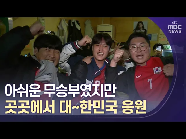 ◀앵커▶11월 24일, 축구 국가대표팀이 카타르 월드겁에서 우루과이를 상대로 첫 예선 경기를 가졌습니다.예전처럼 대규모 거리 응원은 없었지만 곳곳에서, 삼삼오오 모여 응원했는데요.아쉽게 무승부로 끝났지만 경기를 지켜본 많은 사람들은 팽팽한 접전을 펼친 대표팀에게 박수를 보냈습니다.김은혜 기자입니다.◀기자▶축구...