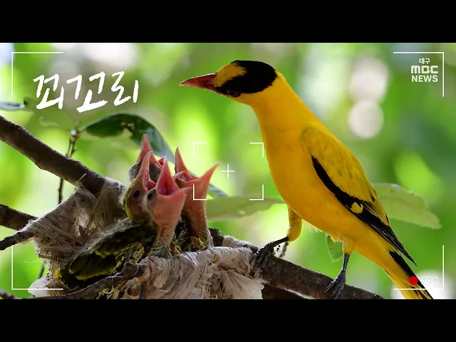 참새목 꾀꼬리과에 속하는 꾀꼬리는 여름철 우리나라에서 흔히 볼 수 있는 철새입니다. 삼국사기 '황조가'에서도 등장할 만큼 오랜 기간 우리와 함께해 왔고 아름다운 목소리의 대명사로 쓰이기도 하는데요, 비가 내리던 7월 1일의 경북 영천, 새끼들을 보호하던 꾀꼬리의 모습을 화면에 담았습니다.(영상 제공 김용식)