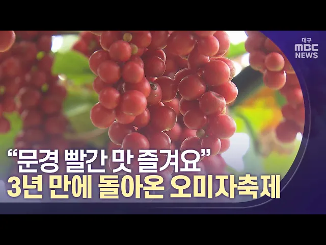 ◀앵커▶코로나 사태로 열리지 못한 가을 축제가 지역마다 다시 정상 개최되고 있습니다.문경에서는 3년 만에 열리는 오미자 축제를 시작으로 사과, 약돌 한우 축제가 잇따라 개최됩니다.김건엽 기자가 보도합니다.◀기자▶오미자 주산지 문경 동로면 금천둔치가 커다란 축제장으로 변했습니다.코로나 19로 인해 중단했던 오미...