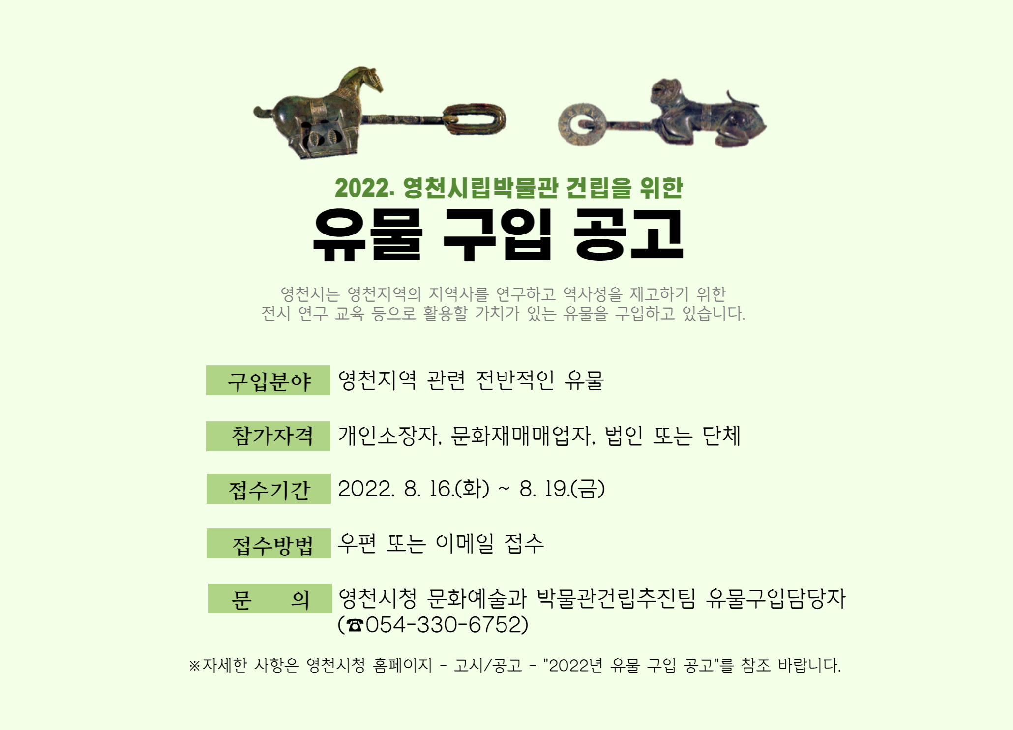 영천시, 시립박물관에 전시할 유물 공개 구매