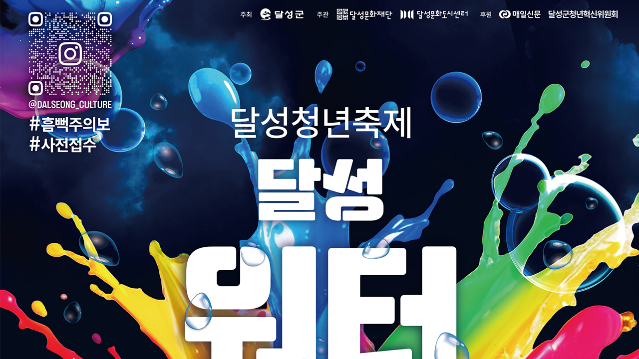 사진 제공 대구 달성군7월 26일 강정보 디아크 광장에서 무료 워터 페스티벌이 열립니다.달성군은 대구 최초로 지역 청년들이 직접 기획하고 운영에 참여하는 '달성 청년 워터스플래시'를 개최한다고 밝혔습니다.축제는 오후 5시부터 청년 장기자랑, DJ 아스터와 함께하는 물총 페스타 등이 진행되고 오후 8시엔 래퍼 그레...