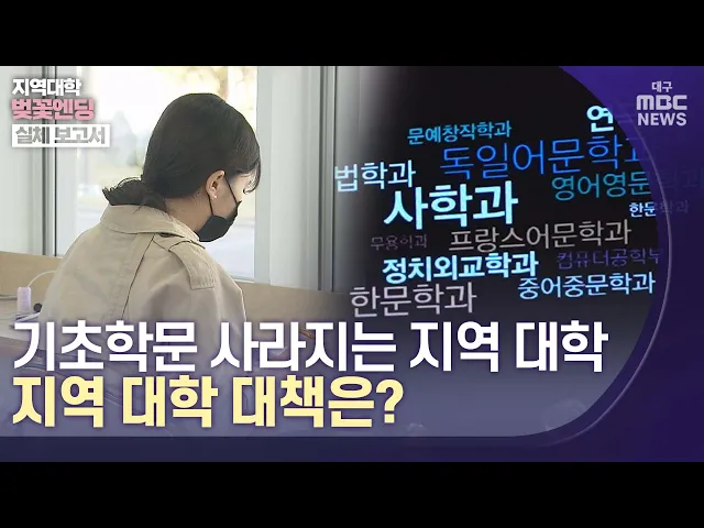 ◀앵커▶연속 보도 '위기의 지역 대학', 오늘은 마지막 순서입니다. 비인기학과인 기초학문, 비판학문이 대학에서 사라지고 있습니다.정부의 재정 지원을 받기 위해 인기학과 위주로 이른바 '학문 구조조정'이 진행되고 있는 건데요,장기적으로 지역 소멸의 원인으로 작용할 수 있다는 우려가 나오고 있습니다. 윤영균 기자가...