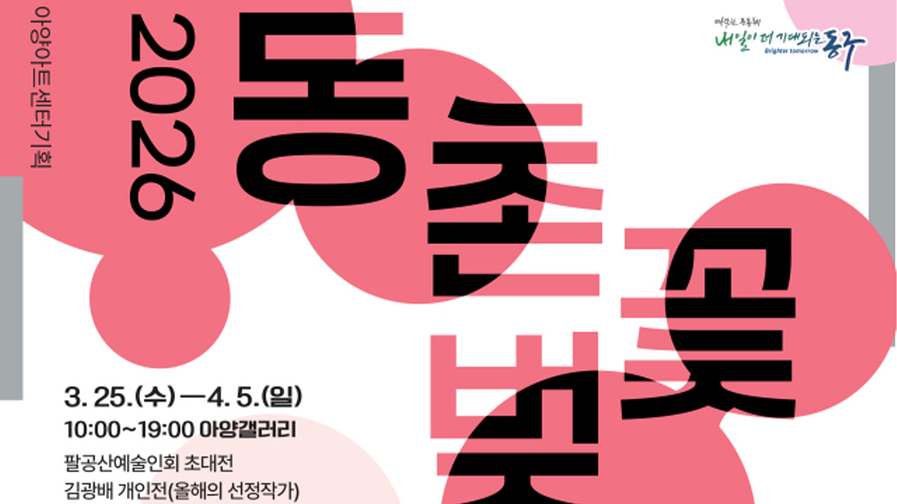 '2026 대구 동촌벚꽃예술제'가 3월 25일부터 4월 5일까지 대구 아양아트센터 아양갤러리와 야외 광장에서 열립니다.아양갤러리에서는 팔공산 일대에 작업실을 두고 활동하는 '팔공산예술인회' 회원들의 작품 40여 점을 전시합니다.또한 올해의 선정 작가 김광배 작가의 작품 30여 점도 함께 감상할 수 있습니다.4월 3일부터...