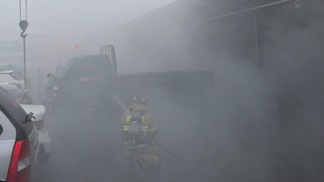 3월 18일 오전 10시 17분쯤 대구시 달성군 구지면 지능형자동차부품진흥원 대구주행시험장에서 1톤 전기 화물차에 불이 났습니다.소방 당국은 장비 15대와 소방 인력 37명을 투입해 오전 10시 반쯤 큰 불길을 잡고 약 3시간 반 만인 오후 1시 55분쯤 불을 완전히 껐습니다.이 불로 인명피해는 없었지만, 화물차가 모두 불에...