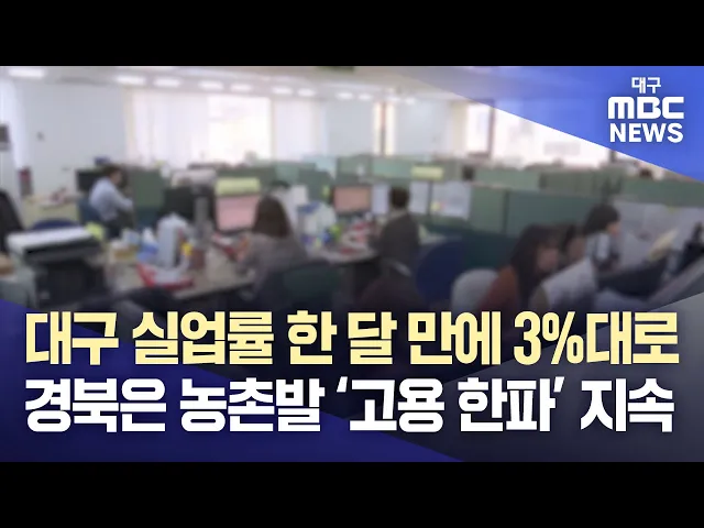 2월 5%대까지 치솟았던 대구의 실업률이 한 달 만에 3%대로 내려앉으며 고용 지표가 회복세로 돌아섰습니다.동북지방데이터청이 발표한 2026년 2월 고용동향을 보면, 대구의 취업자 수는 121만 4,000명으로 1년 전보다 1만 8,000명(1.5%) 증가했습니다.실업률은 3.2%로 1년 전보다 0.5% 포인트 떨어졌고, 고용률은 57.9%로 ...