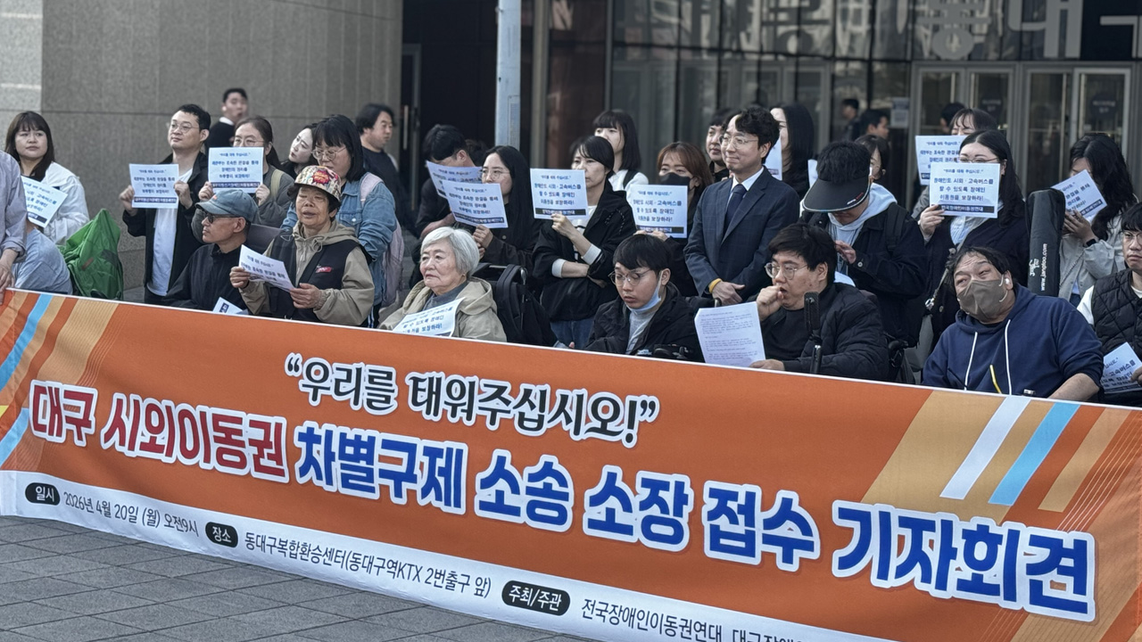 장애인의 날인 4월 20일, 대구를 비롯해 전국의 장애인단체들이 시외·고속버스 회사를 상대로 차별 구제 소송에 나섰습니다.대구장애인차별철폐연대는 동대구복합환승센터 앞에서 기자회견을 열고 "대한민국에도 휠체어 장애인이 탈 수 있는 시외 고속버스는 단 한 대도 없다"면서 "좌석 수가 줄어 수익이 악화한다는 이유...