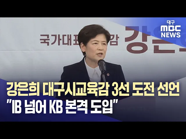 강은희 대구시교육감이 3선 도전을 선언했습니다.강 교육감은 4월 20일 오전 시교육청에서 기자회견을 열고 '글로벌 교육 수도 대구' 도약을 기치로 제10대 대구시교육감 출마를 공식 선언했습니다.강 교육감은 지난 8년간의 성과를 바탕으로 대한민국 공교육 혁신을 넘어 세계적인 교육 문화를 선도하겠다는 포부를 밝혔습...