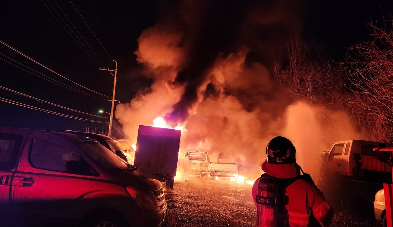 성주 벽진 공터에서 수출용 중고차 12대 화재