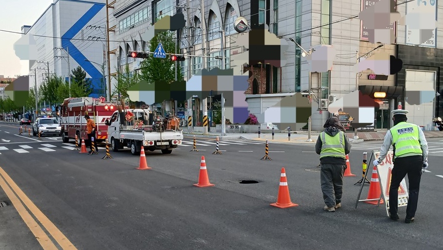 경북 구미시 공단동에서 도로 땅 꺼짐 발생···2시간여 만에 복구 완료