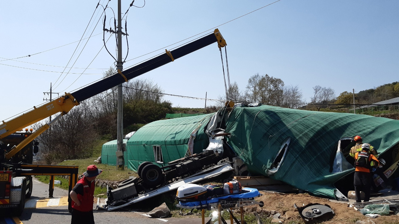 경북 칠곡서 3.5톤 화물차 전도···70대 운전자 숨져