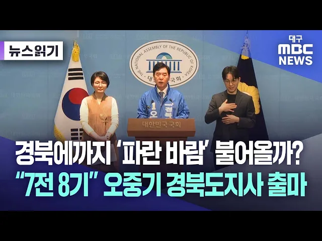 오중기 더불어민주당 경북도지사 예비후보가 경북도지사 선거 출마를 공식 선언했습니다.오 예비후보는 4월 6일 오전 10시 국회 소통관에서 출마 기자 회견을 열고, "대구와 통합되기 전 경북의 마지막 도지사가 되고 싶은 후보"라고 규정하며, "멈춘 경북의 심장을 다시 뛰게 하겠다"라고 밝혔습니다."사람들이 미련하다 ...