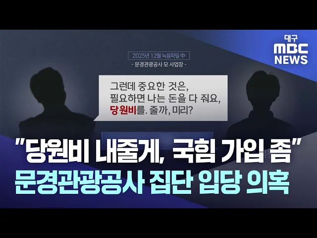 ◀앵커▶경북 문경시 산하 관광공사에서 간부들이 직원들을 국민의힘에 집단 입당시키려 했다는 의혹이 제기돼 경찰이 수사에 나섰습니다.취재진이 당시 상황을 기록한 음성파일을 입수했는데, 한 간부는 당비를 내주겠다며 이번 6월 지방 선거까지 국민의힘에 가입할 것을 종용했던 것으로 확인됐습니다.김서현 기자 단독보...