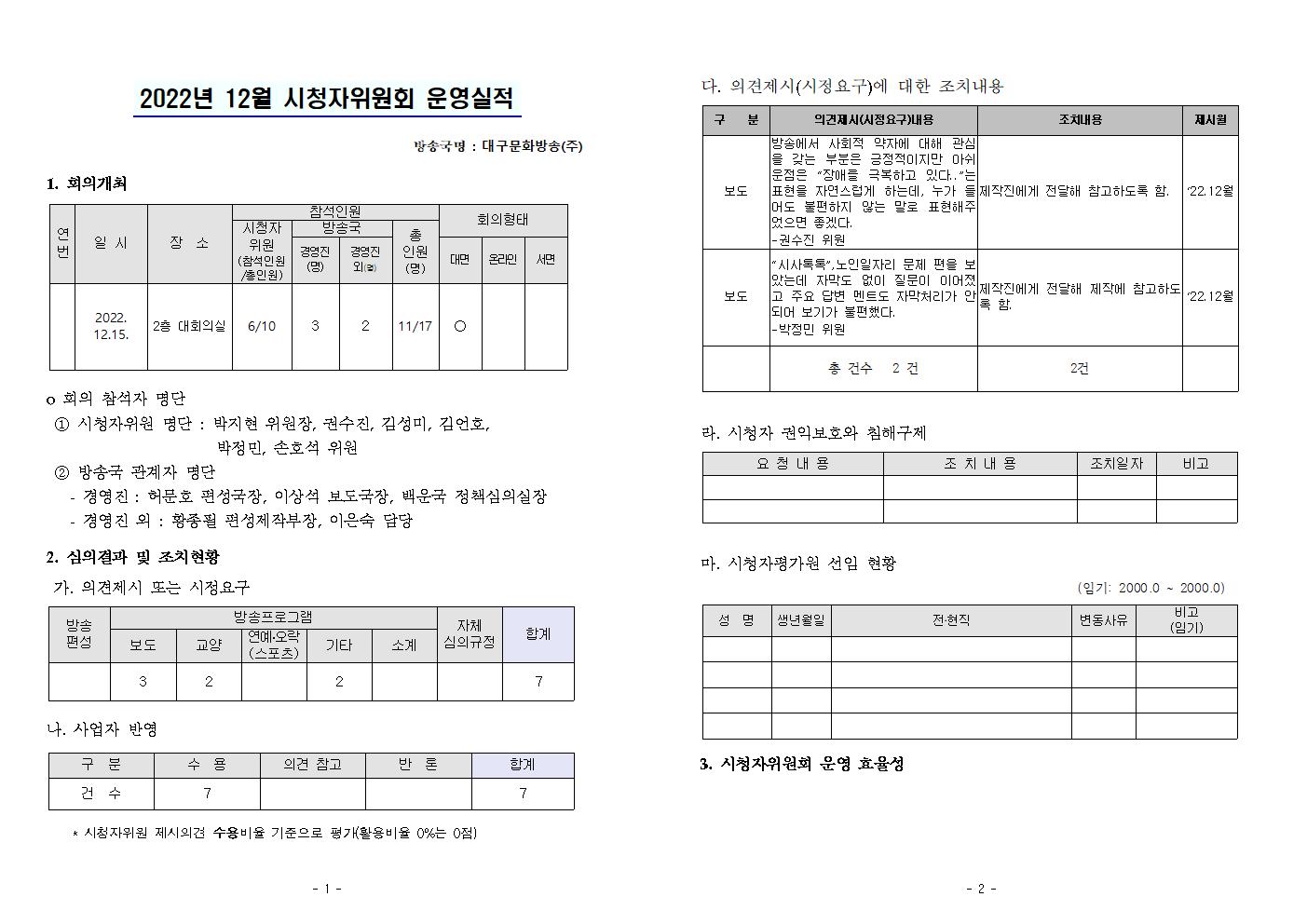 2022년 12월 시청자위원회 운영실적