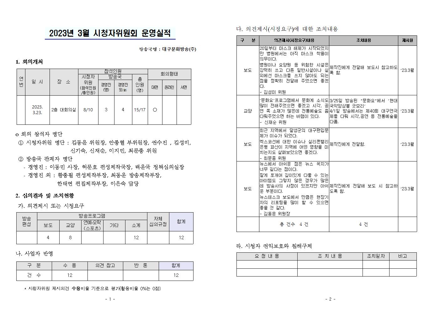 2023년 3월 시청자위원회 운영실적