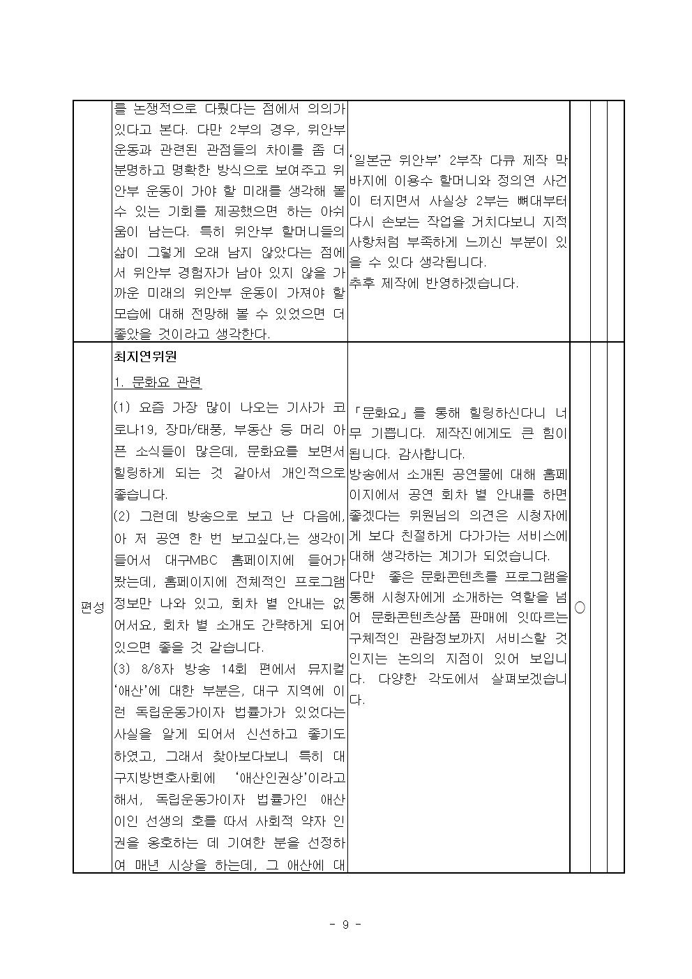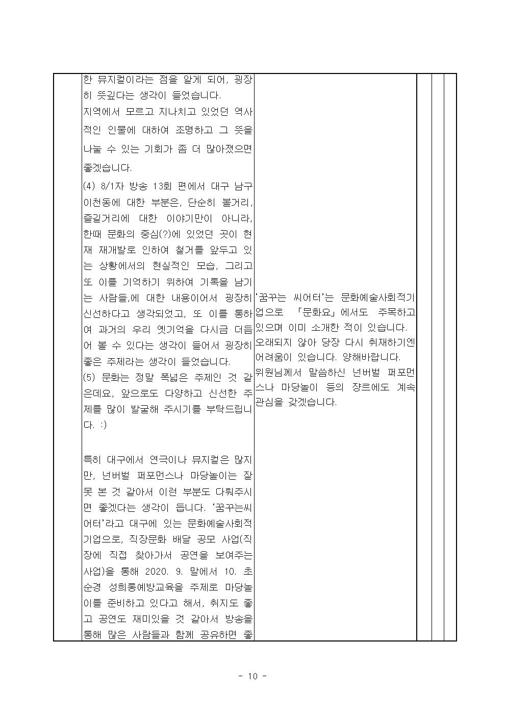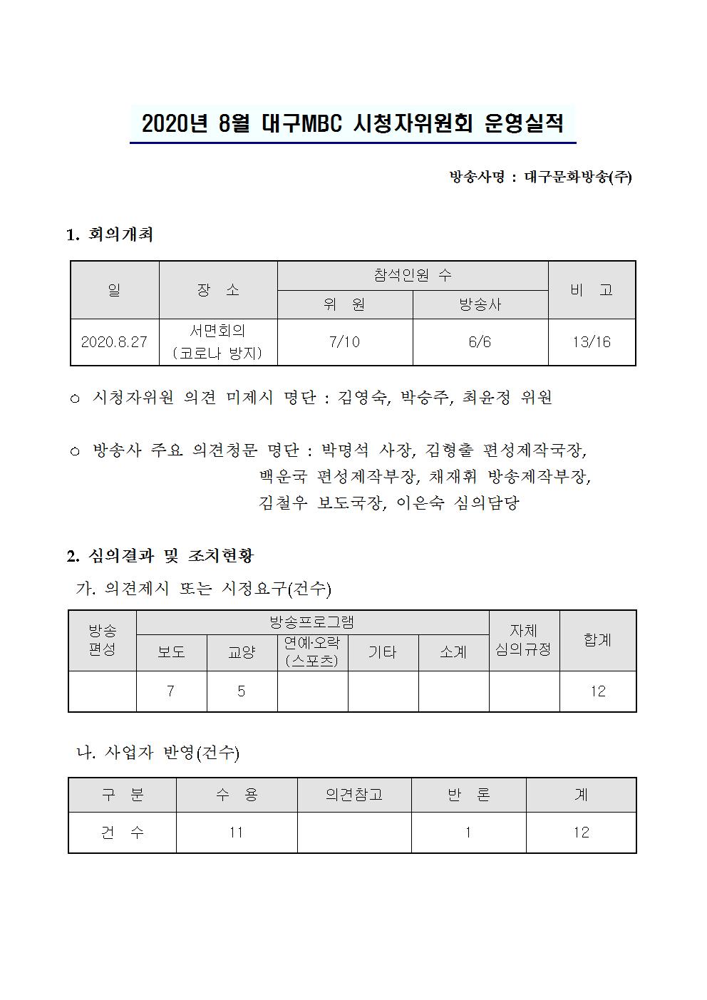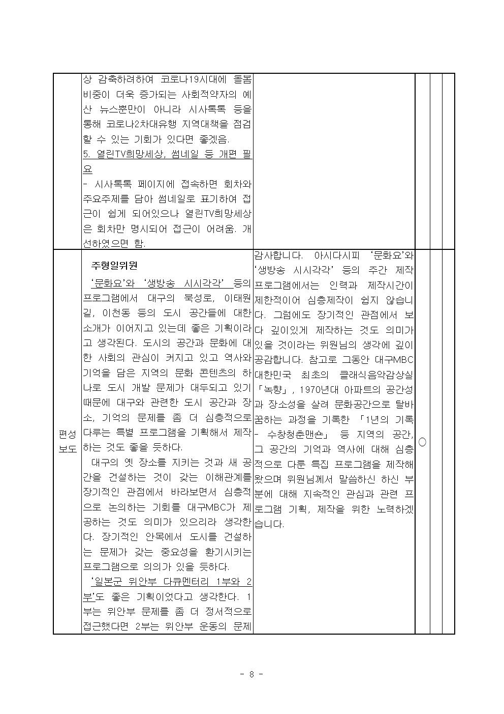 2020년 8월 시청자위원회 운영실적