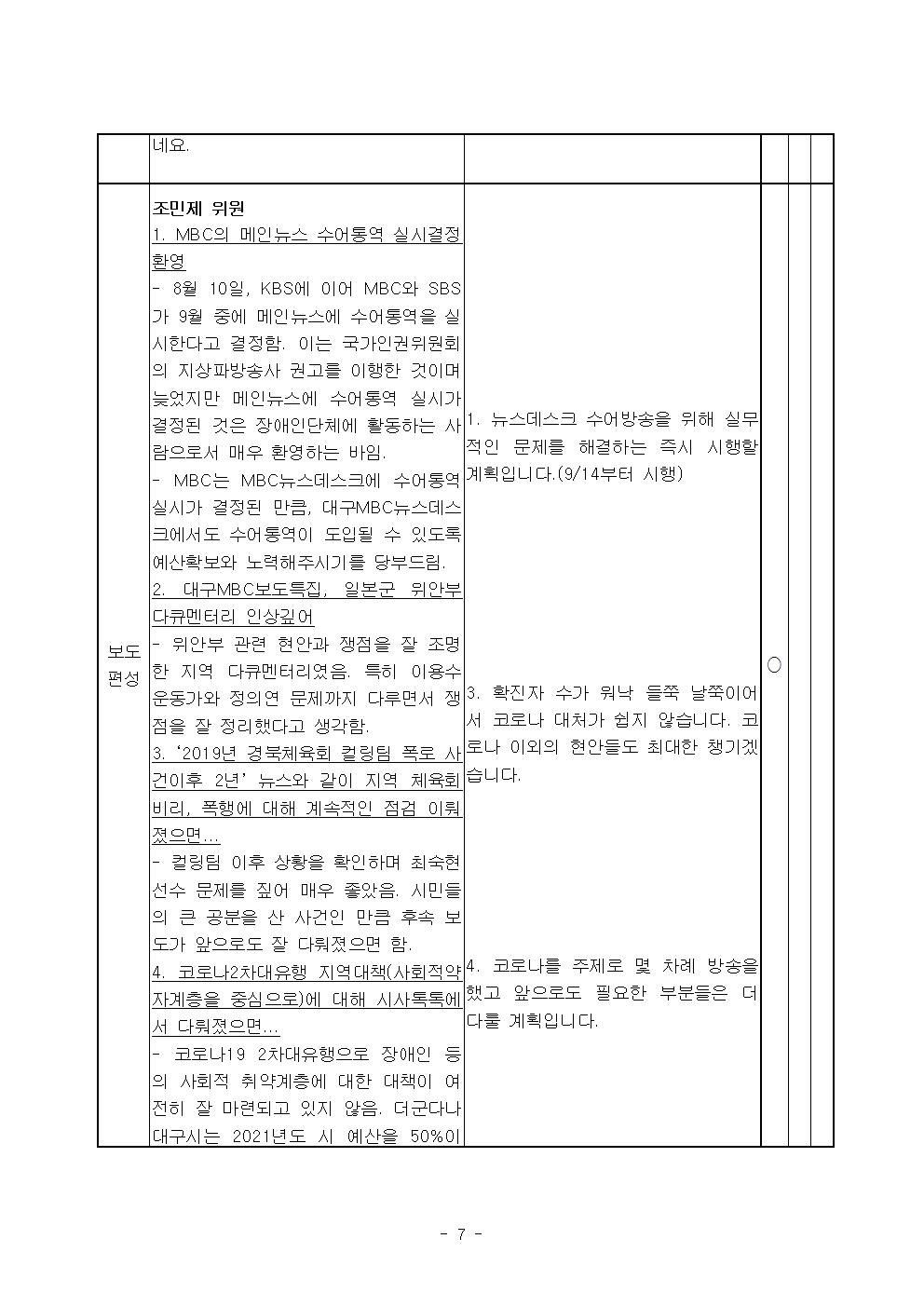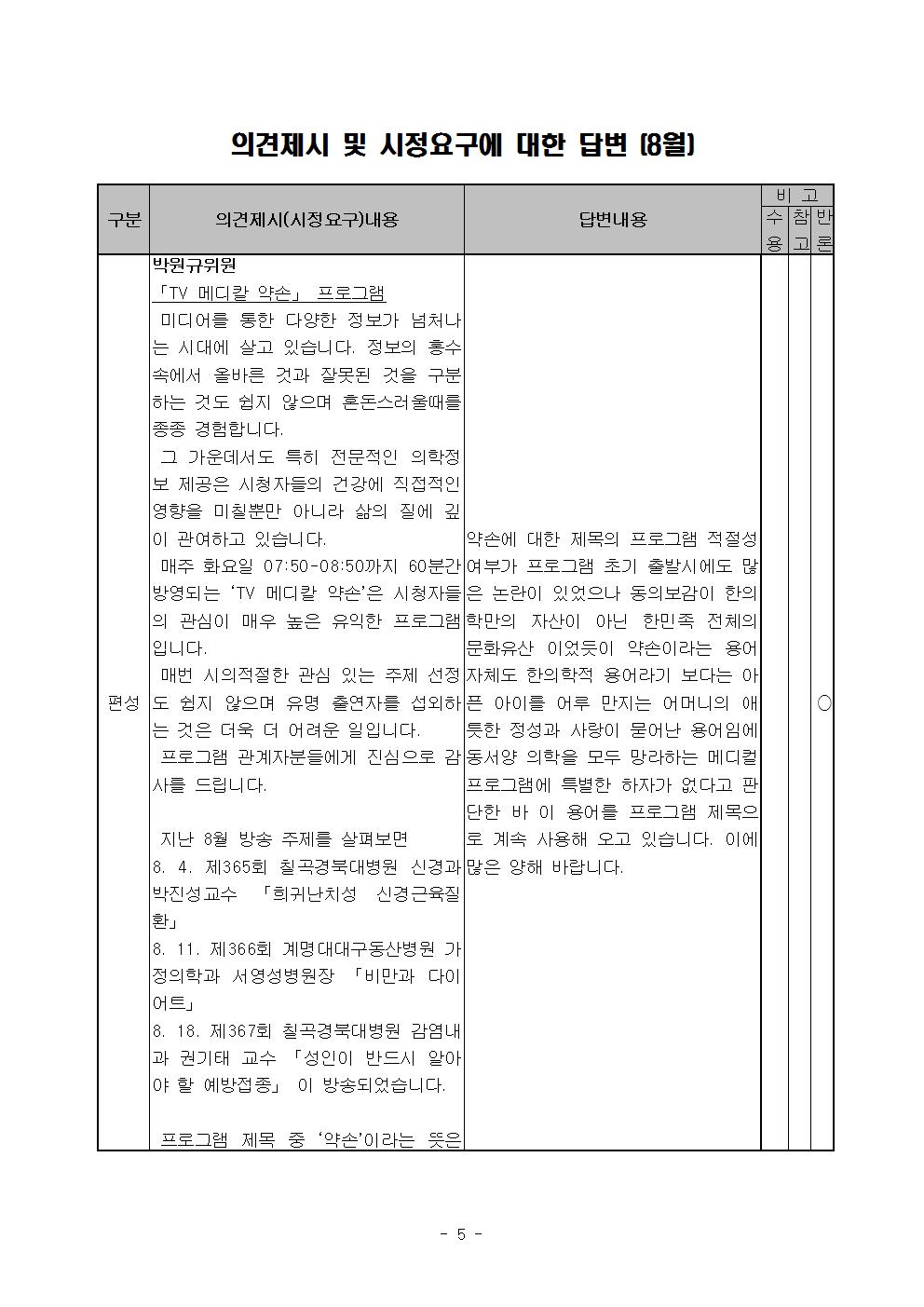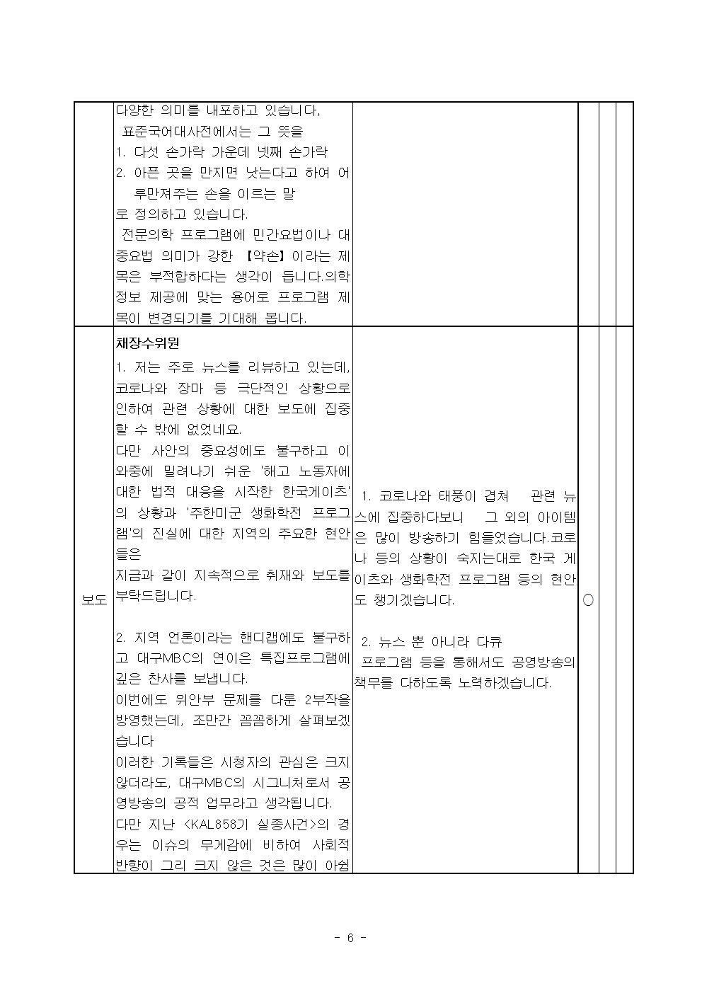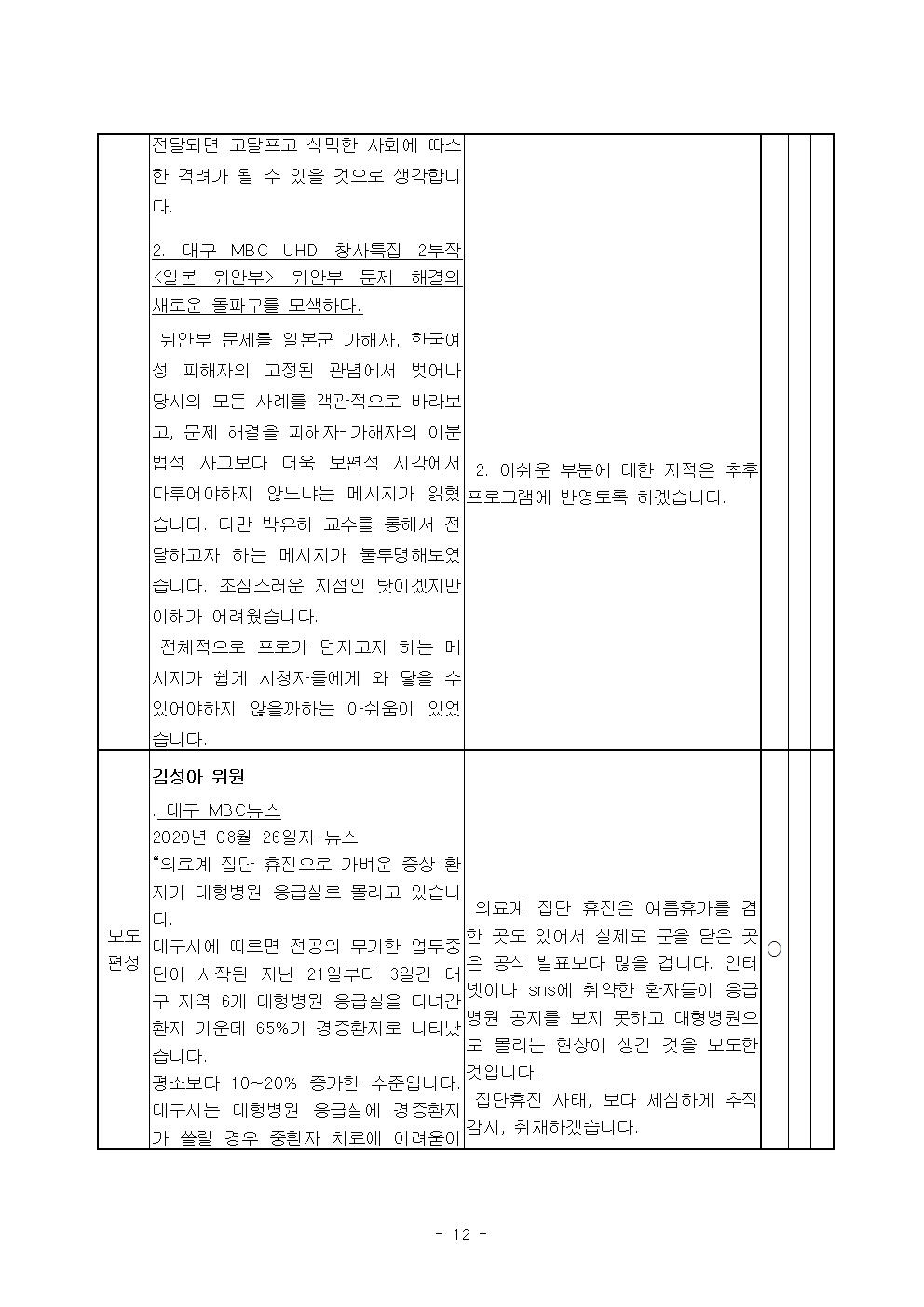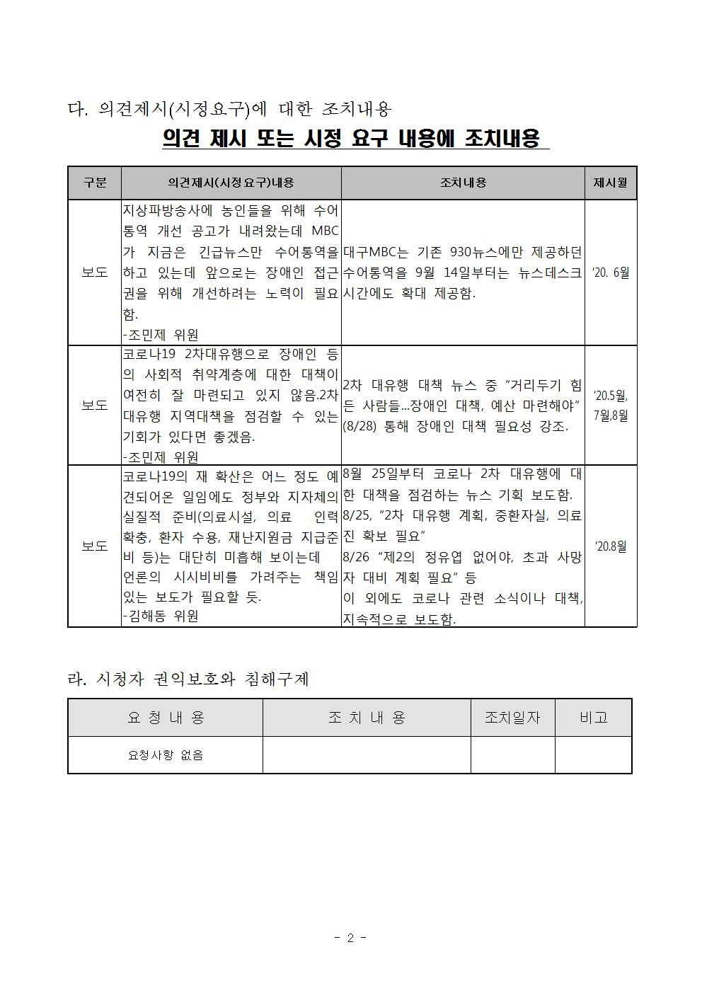 2020년 8월 시청자위원회 운영실적