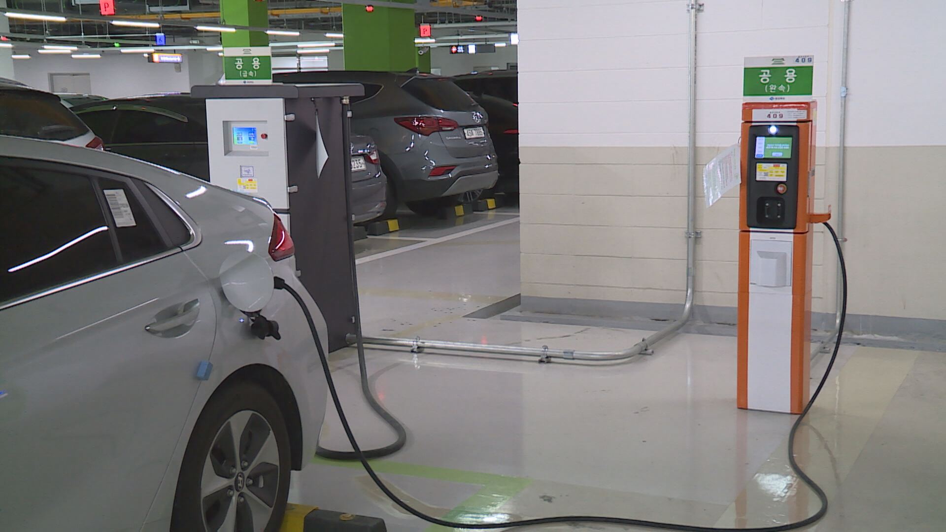 산자부는 전기차 충전시설 의무설치 대상을 아파트는 500세대 이상에서 100세대 이상으로, 공영주차장은 주차면수 100면에서 50면 이상으로 늘리는 등 의무설치 대상을 대폭 늘렸습니다.