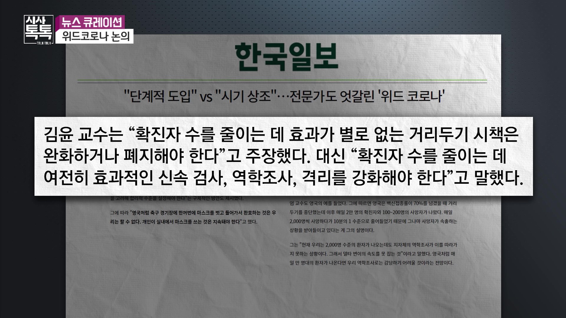 전문가들 사이에서도 의견은 엇갈리는데요. 김윤 서울대 의대교수는 거리두기는 효과가 크게 없다며 완화나 폐지하고 여전히 효과적인 신속검사, 역학조사, 격리는 강화해야 한다는 입장을 냈고요.