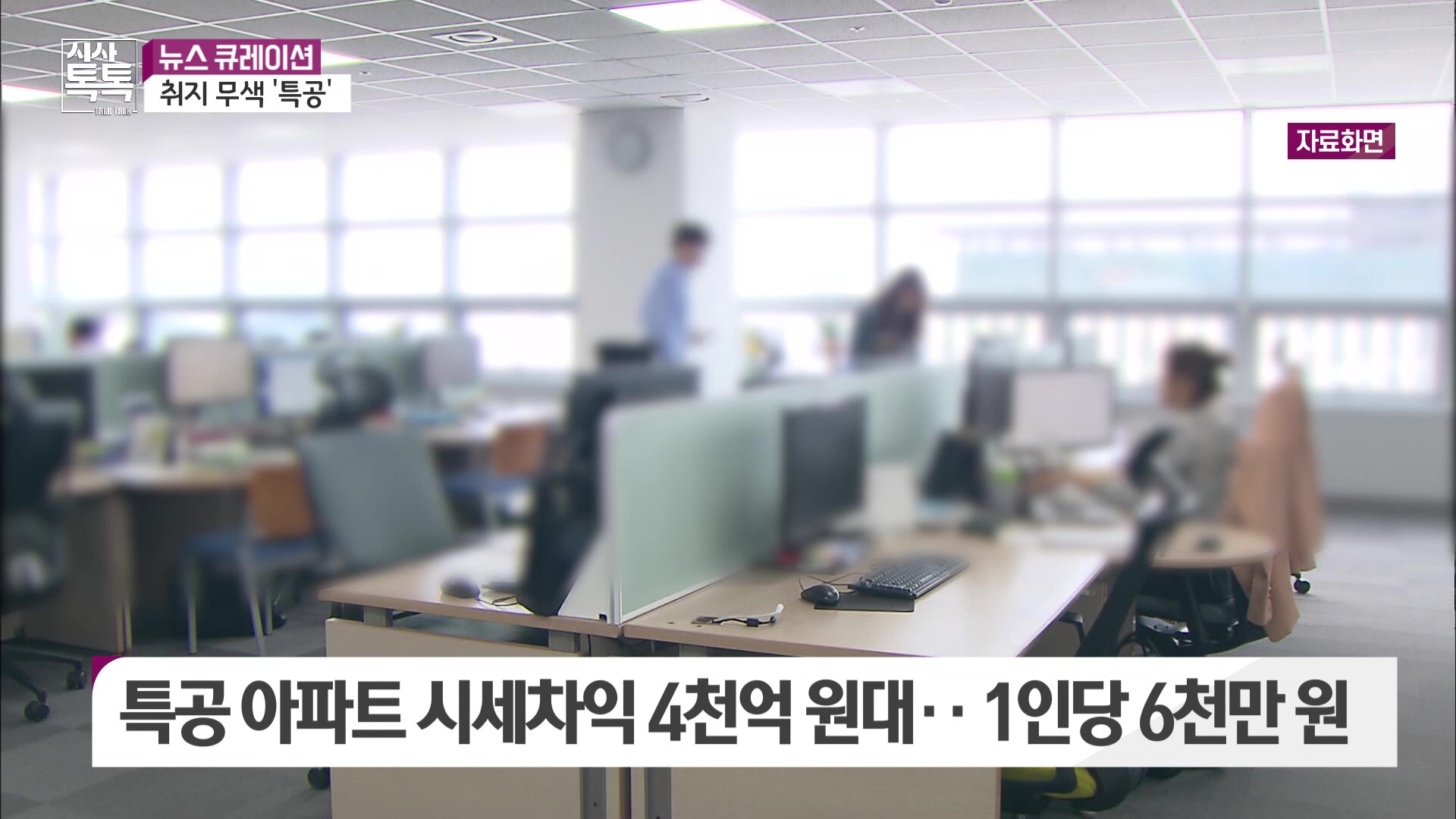 전국 혁신도시 공공기관 임직원들이 특공 아파트를 팔아 남긴 시세차익은 4천억 원대, 1인당 얻은 시세차익은 6천만 원 가량으로 나타났습니다.