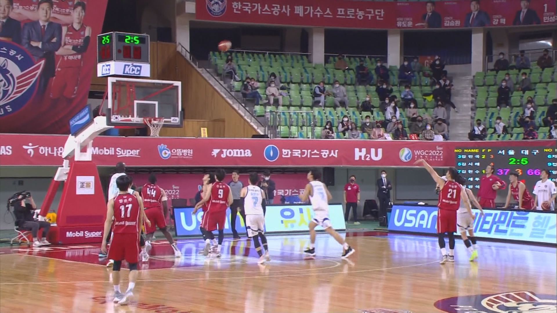 최근 2연패로 주춤했던 가스공사는 어제 서울 삼성과의 경기에서 이대헌과 니콜슨의 활약에 힘입어 86대 56으로 크게 이겼습니다.