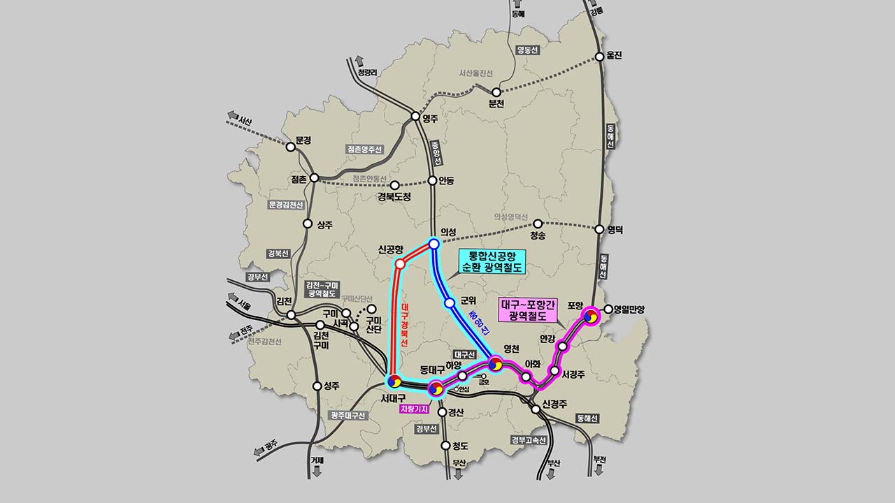 경상북도가 신공항으로 접근성을 높이기 위해 대구·경북 광역철도와 중앙선, 대구선, 경북선을 연계해 확대하는 방안을 추진하기로 했습니다.