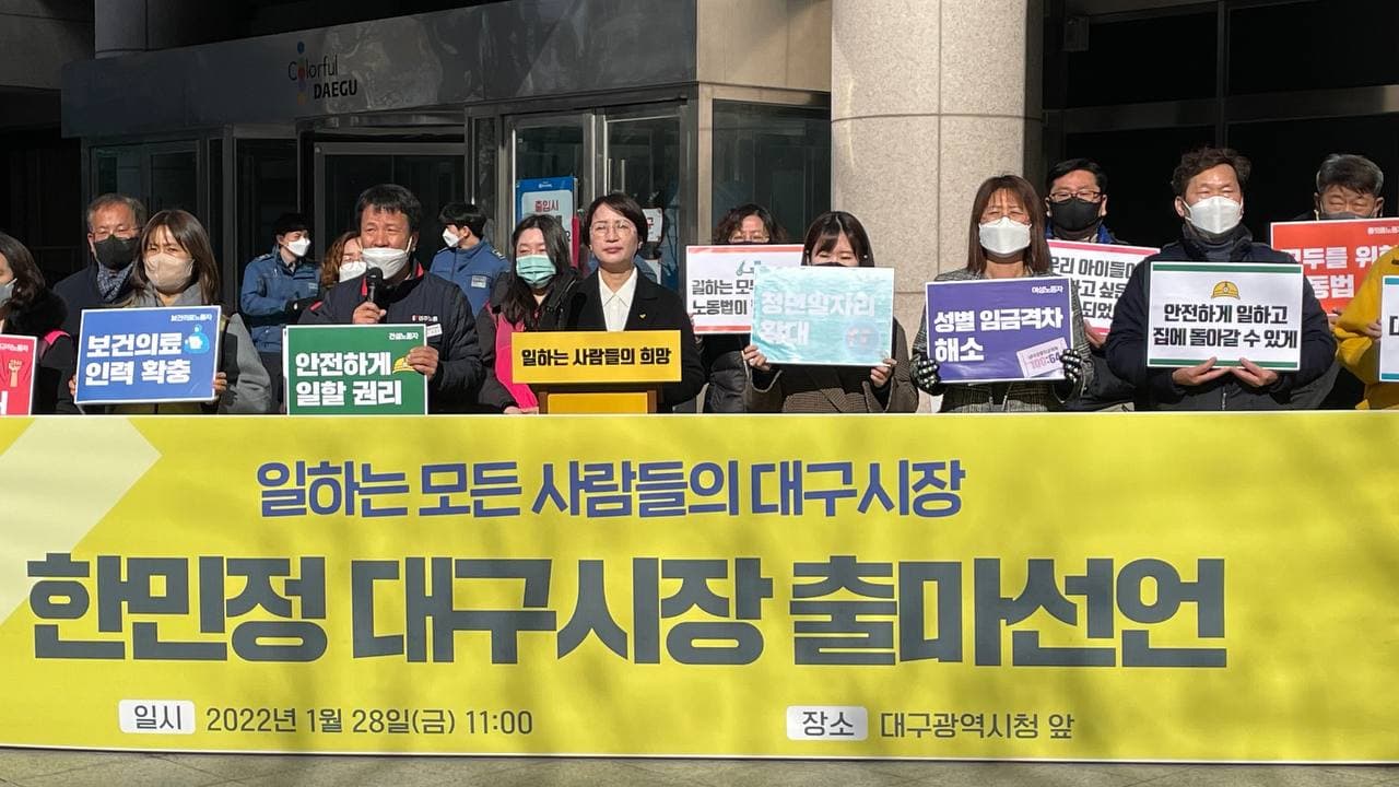 한민정 위원장은 '일하는 모든 사람의 대구시장'을 표방하면서 "노동정책이 바로 서는 대구시를 만들겠다"고 밝혔습니다.