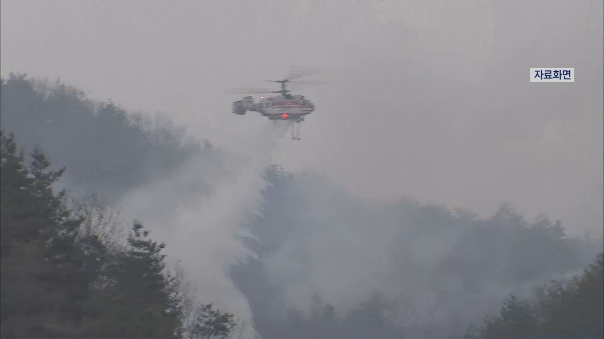 산림 당국은 산불 2단계를 바령하고 헬기 16대와 산불진화대원 50여명을 투입해 진화에 나섰습니다.