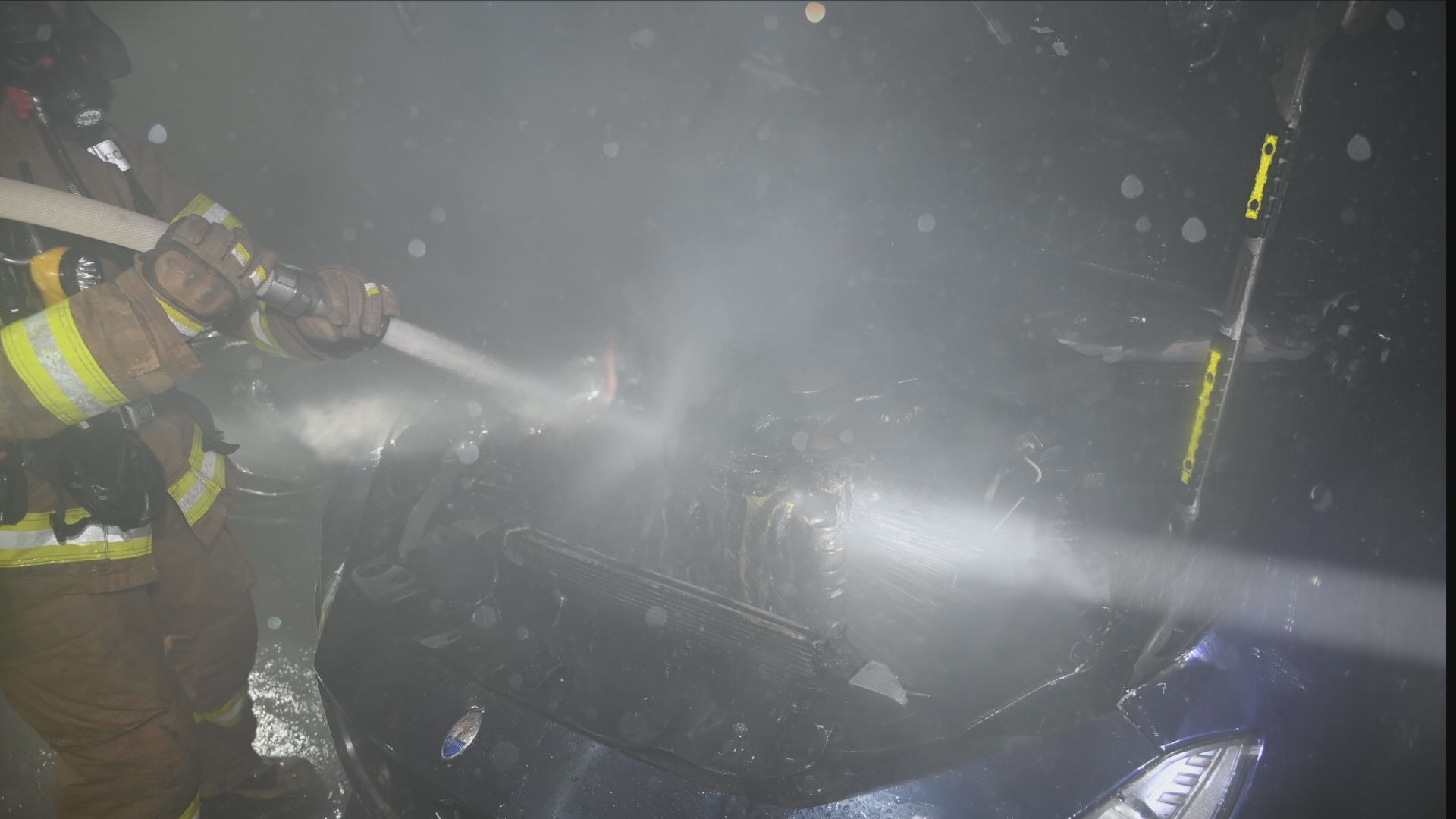 주차된 차에서 시작된 불은 차량 1대를 태우고 소방서 추산 3,300만 원의 재산피해를 낸 뒤 20분 만에 꺼졌습니다.